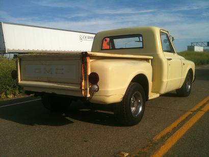 1967 GMC/CHEVROLET C10 STEPSIDEDrive Line - V6 GMC / 4 speed trans / 10 bolt rear axle Body and paint - Clean straight body, minor rust at door openings,Faded yellow paint with primer patch's . Very good chrome glass and stainless. Trim - Clean trim good dash and door panels. Will require a good clean and a new rubber floor mat. Mechanical - The V6 GMC motor will run, however it has a con rod knock, 4 speed transmission with crawler first gear . The truck is dead stock and will require the usual mechanical restoration due to its age and unrestored condition. General - Clean, unmolested Northern California truck. A perfect candidate for a small or big block upgrade 15 x 8 truck rally wheels slightly lowered this little truck has a nice stance about it . Priced at $9950.00 inc GST Stock number S631 |