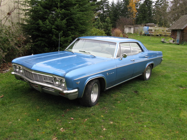 1966 CHEVROLET IMPALA 4 DOOR HARD TOP LHDDrive Line - 327 /Power glide auto 10 bolt rear end. Paint and Body - Recent metallic blue paint work, very minor rust in boot floor only. Very good chrome, glass, and stainless. Trim - Clean two tone beige trim needing only a set of carpets to set if off. and stainless. Mechanical - Good driving car that will require some minor mechanical repairs to be road worthy. Centreline wheels with good tyres, twin exhaust system General - Nice clean old car that will require very little work to be a great cruiser. Priced at $12950.00 inc GST stock number S592