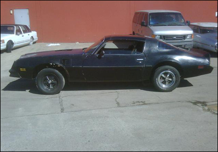 1979 Pontiac TRANSAM LHD black on black T tops no motor or trans with a 78 nose cone this is a decent clean California roller which will make an ideal Bandit clone or is the perfect car to build a Year One Style retro transam. Arrive early 2010.